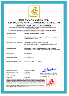 Hanyang (Hangzhou) Cable Co., Ltd. has successfully obtained the CE (full name CONFORMITE EUROPEENNE) certification certificate issued by the EU certification agency for its network and photovoltaic cables. It has passed the safety indicator measurement and obtained a sales pass to enter the European Union market, providing strong support for its expansion into the EU cable market.